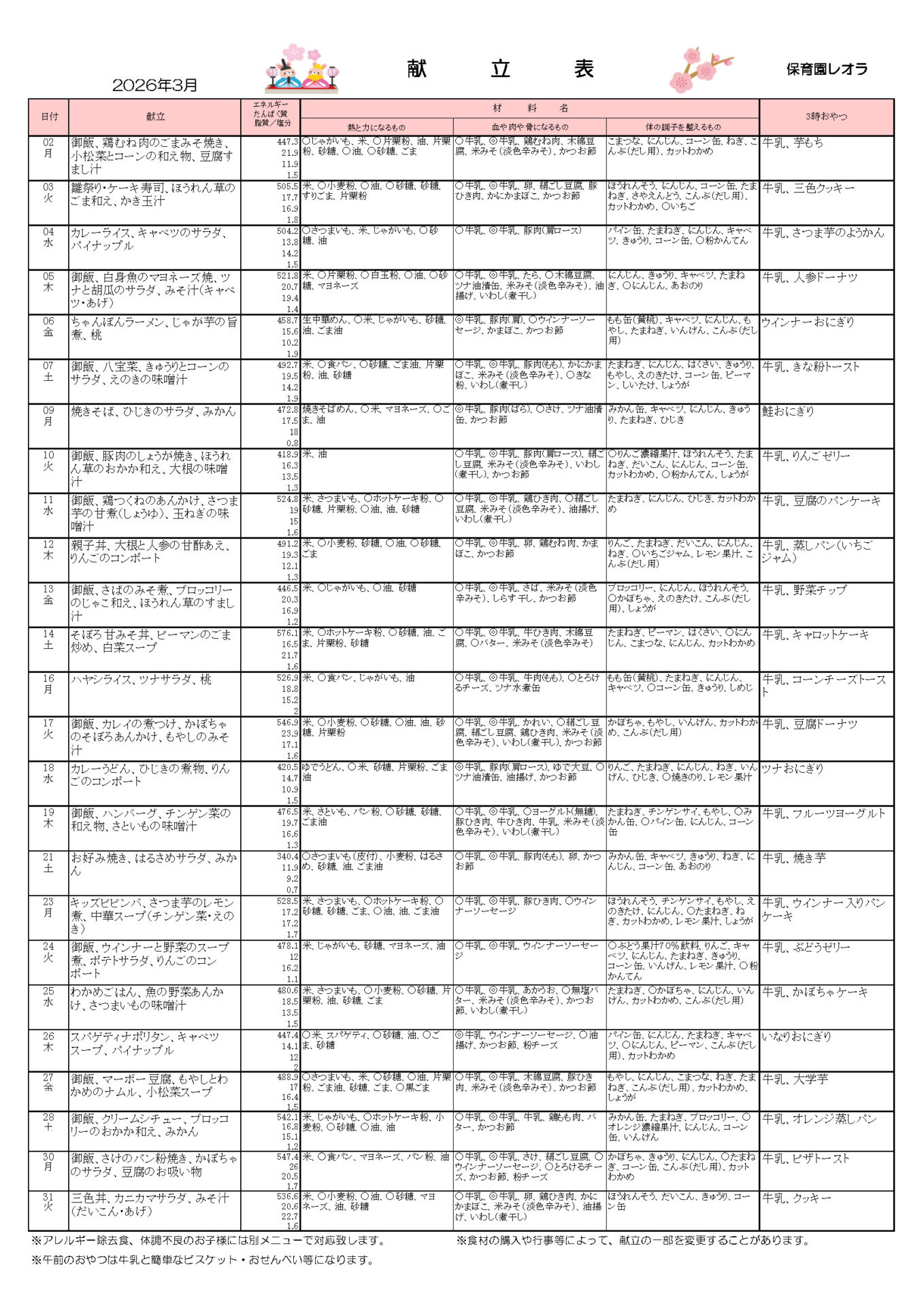 さっそく3月の献立情報をお届けします!